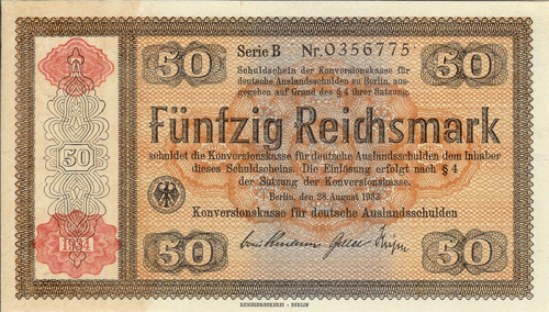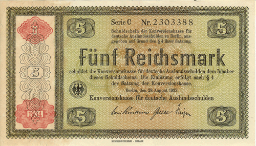 Germany, a nation of north-central Europe which from 1871 to 1945 was, successfully, an empire, a republic and a totalitarian state, attained its territorial peak as an empire when it comprised a 208,780 sq. mi. (540,740 sq. km.) homeland and an overseas colonial empire. ,As the power of the Roman Empire waned, several warlike tribes residing in northern Germany moved south and west, invading France, Belgium, England, Italy and Spain. In 800 AD the Frankish King Charlemagne, who ruled most of present-day France and Germany, was crowned Emperor of the Holy Roman Empire. Under the successors, this empire was divided into France in the west and Germany (including the Emperor?s title) in the east. Over the centuries the German part developed into a loose federation of as estimated 1,800 German States that lasted until 1806. Modern Germany was formed from the eastern part of Charlemagne?s empire.,, ,In 1815, the German States were reduced to a federation of 32, which Prussia was the strongest. In 1871, Prussian Chancellor Otto Von Bismarck united the German States into an empire ruled by Wilhelm I, the Prussian king. The empire initiated a colonial endeavor and became one of the world?s greatest powers Germany disintegrated as a result of World War I, and was reestablished as the Weimar Republic. The humiliation of defeat, economic depression, poverty and discontent gave rise to Adolf Hitler in 1933, who reconstituted Germany as the Third Reich and after initial diplomatic and military triumphs, led it to disaster in World War II. During the postwar war, the western provinces were occupied by the Allied forces while the eastern provinces were occupied and administered by the Soviet Union. East Germany and West Germany were established in 1949.,, ,The post-WWII division of Germany ended on Oct 3, 1990, when the German Democratic Republic (East Germany) ceased to exist and its five constituent provinces were formally admitted to the Federal Republic of Germany. An election held on Dec. 2, 1990 chose representatives to the united federal parliament (Bundestag), which then conducted its opening session in Berlin in the old Reichstag building. The Capital remained in Bonn until 1999.,, Rulers:,,, ,Wilhelm I, 1871-1888,, ,Friedrich III, 1888,, ,Wilhelm II, 1888-1918,, Monetary System:,,, ,1 Marl = 100 Pfennig to 1923,, ,1000 Milliarden Mark = 1 Billion Mark = 1 Rentenmark = 100 Rentenpfennig,,, ,,1923-1924, ,1 Rentenmark = 1 Reichmark = 100 Reichspfennig, 1924-1948,, ,1 AMC Mark = 1,000,000,, ,10 Millionen = 10,000,000,, ,1 Milliarde = 1,000,000,000 (English 1 Billion),, ,1 Billion = 1,000,000,000,000 (English 1 Trillion),, ,10 Billionen = 10,000,000,000,000,