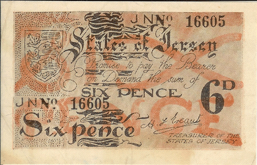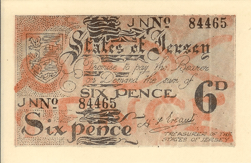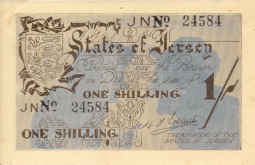 The Bailiwick of Jersey, a British Crown dependency located in the English Channel 12 miles (19 km.) west of Normandy, France, has an area of 45 sq. mi. (117 sq. km.) and a population of 90,000. Capital: St. Helier. The economy is based on agriculture and cattle breeding ? the importation of cattle is prohibited to protect the purity of the island?s world-famous strain of milk cows. ,Jersey was occupied by Neanderthal man 100,000 B.C., and by Iberians of 2000 B.C. who left their chamber tombs in the island?s granite cliffs. Roman legions almost certainly visited the island although they left no evidence of settlement. The country folk of Jersey still speak an archaic form of Norman-French, lingering evidence of the Norman annexation of the island in 933 B.C. Jersey was annexed to England in 1206, 140 years after the Norman Conquest. The dependency is administered by its own laws and customs; laws enacted by the British Parliament do not apply to Jersey unless it is specifically mentioned. During World War II, German troops occupied the island from 1940 until 1944.,, ,United Kingdom bank notes and coinage circulate concurrently with Jersey money as legal tender.,, Rulers:,,, ,British,, Monetary System:,,, ,1 Shilling = 12 Pence,, ,1 Pound = 20 Shillings to 1971,,