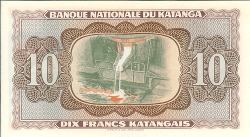 Katanga, the southern province of the former Zaire extends northeast to Lake Tanganyika, east and south to Zambia, and west to Angola. It was inhabited by Luba and Bantu peoples, and was one of Africa?s richest mining areas. ,In 1960, Katanga, under the leadership of provincial president Moise Tshombe and supported by foreign mining interests, succeeded from newly independent Republic of the Congo. A period of political confusion and bloody fighting involving Congolese, Belgian and Untied Nations forces ensued. At the end of the rebellion in 1962, Katanga was reintegrated into the republic, and is known as the Shaba region.,, ,For additional history, see Zaire.,, Monetary System:,,, ,1 Franc = 100 Centimes,,