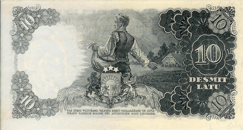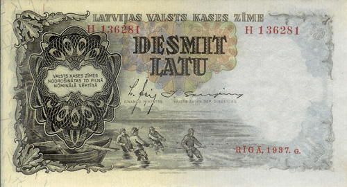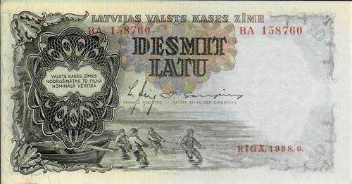 LATVIA P-29b UNC, ND, 1938, 10 LATU, FISHERMAN+NET AT CENTER 75 Front Side Back Side