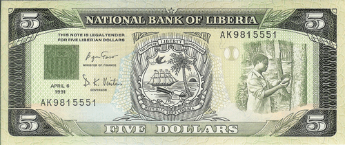 | LIBERIA | P-20 | UNC, | 4-6-1991, $5., GREEN-BLACK, TAPPING TREES, | 12 |