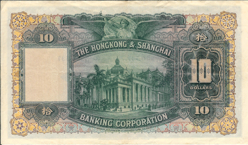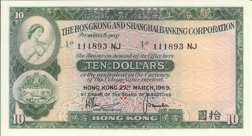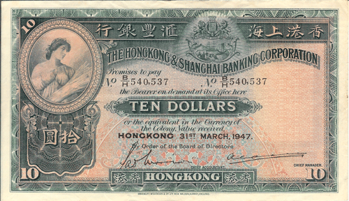 HONG KONG P-178d VF, 31-3-1947, $10., HONG KONG SHANGHAI BANKING CORP. 175 Front Side Back Side