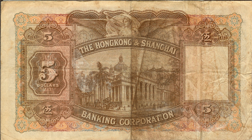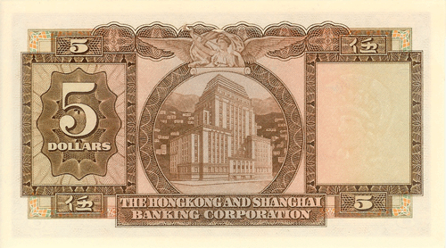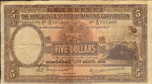 HONG KONG P-173e F-VF, 30-3-1946, $5., HONG KONG SHANGHAI BANKING CORP. 65 Front Side Back Side