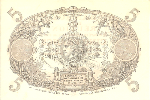 | REUINION | P-14 | UNC, | ND, L-1901, 5 FR., RED, GREY BACK, RARE, | 275 |