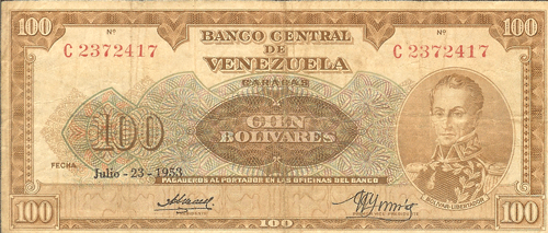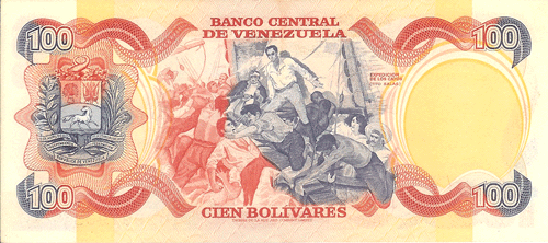 The Republic of Venezuela, located on the northern coast of South America between Colombia and Guyana, has an area of 352,145 sq. mi. (912,050 sq. km.) and a population of 24.17 million. Capital: Caracas. Petroleum and mining provide 90 percent of Venezuela?s exports although they employ less than 2 percent of the work force. Coffee, grown on 60,000 plantations, is the chief crop. ,Columbus discovered Venezuela on his third voyage in 1498. Initial exploration did not reveal Venezuela to be a land of great wealth. An active pearl trade operated on the off-shore islands and slavers raided the interior in search of Indians to be sold into slavery, but no significant mainland settlements were made before 1567 when Caracas was founded. Venezuela, the home of Bolivar, was among the first South American colonies to revolt against Spain in 1810. Independence was attained in 1821 but not recognized by Spain until 1845. Together with Ecuador, Panama and Columbia, Venezuela was part of ?Gran Columbia? until 1830 when it became a sovereign and independent state.,, Monetary System:,,, ,1 Boliviar = 100 Centimos, 1879-,,