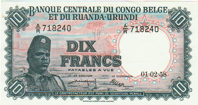 Belgian Congo (now the Congo Democratic Republic), located in the south-central part of Africa, has an area of 905,378 sq. mi. (2,344,920 sq. km.) and a population of 13.6 million. Capital: Kinshasa. The mineral-rich country produces copper, tin, diamonds, gold, zinc, cobalt and uranium. ,In ancient times the territory comprising the Belgian Congo was occupied by Negrito peoples (Pygmies) pushed into the mountains by Bantu and Nilotic invaders. The interior was first explored by the American correspondent Henry Stanly, who was the local chiefs. The Berlin conference of 1885 awarded the area to Leopold, who administered and exploited it as the private property until it was annexed to Belgium in 1907. Belgium received the mandate for the German territories of Ruanda-Urandi as a result of the international treaties after WWI. During WWII Belgian Congolese troops fought on the side of the Allies, notably in Ethiopia. Following the eruption of bloody independence riots in 1959, Belgium granted the Belgian Congo independence as the Republic of the Congo on June 30, 1960.,, Rulers:,,, ,Leopold II, 1885-1907,, ,Belgium, 1907-1960,, Monetary System:,,, ,1 Franc = 100 Centimes to 1967,, 22,BELIZE,bh-flag.gif,"Belize (formally British Honduras) is situated in Central America south of Mexico and east and north of Guatemala. It has an area of 8,867 sq. mi. (22,965 sq. km.) and a population of 242,000. Capital: Belmopan. Sugar, citrus fruits, chicle, and hard woods are exported. ,The area, site of the ancient Mayan civilization, was sighted by Columbus in 1502, and settled by shipwrecked English seamen in 1638. British buccaneers settled the 17th Century. Britain claimed administrative right over the area after the emancipation of Central America from Spain, and declared it a dependency of the Colony of Jamaica in 1862. It was established as the separate Crown colony of British Honduras in 1884. The anti-British People?s United Party, which attained power in 1954, won a constitution, effective in 1964 which established self-government under a British appointed Governor. British Honduras became Belize on June 1, 1973, following the passage of a surprise bill by the People?s United Party, but the constitutional relationship with Britain remained unchanged.,, ,In December 1975, the U.N. General Assembly adopted a resolution supporting the right of the people of Belize to self-determination, and asked Britain and Guatemala to renew their negotiations on the future of Belize. They obtained independence on September 21, 1981. Elizabeth II is Head of State, as Queen of Belize.,, ,For earlier bank notes, see British Honduras.,, Monetary System:,,, ,1 Dollar = 100 Cents ,,