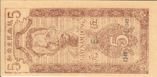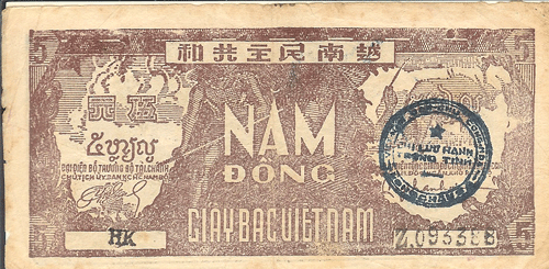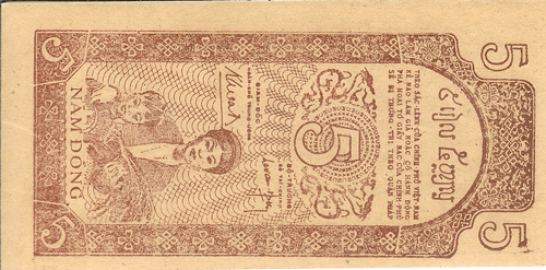 VIETNAM P-10c AU ND, 1947, 5 DONG, RED-BROWN, HMC 35 Front Side Back Side