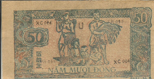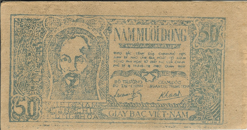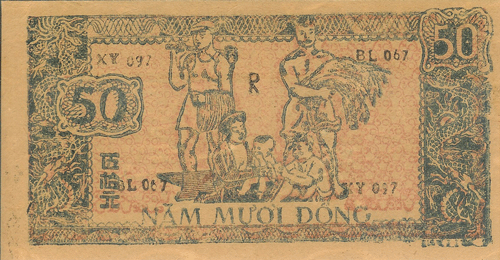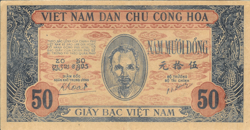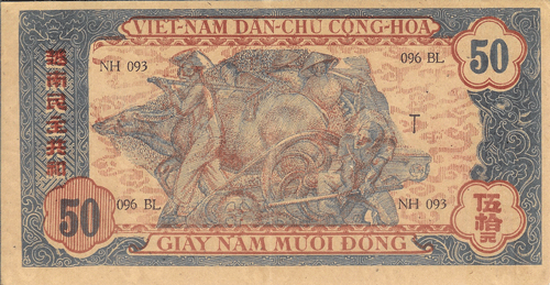 VIETNAM P-11c AU, ND, 1948-49, 50 DONG, BLUE-BROWN, WORKERS-BUFFALO,' 85 Front Side Back Side