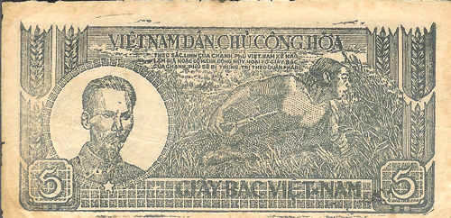 VIETNAM P-10c UNC, ND, 1947, 5 DONG, WOMAN&BOY, HO CHI MINH 55 Front Side Back Side