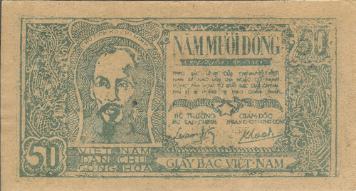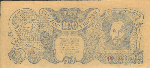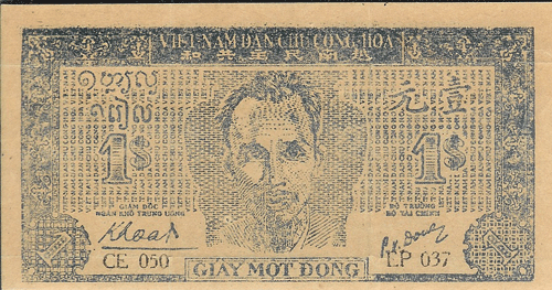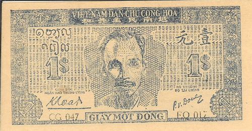 VIETNAM P-9b XF, ND,1946, 1 DONG, HO CHI MINH,BLUE,RARE,' 33 Front Side Back Side