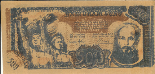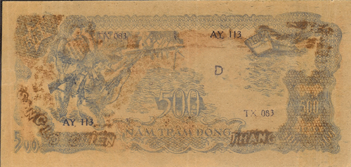 VIETNAM P-31a XF, ND, 1949, 500 DONG, DK BLUE-BROWN, MAN+WOMAN W. TORCH,' 125 Front Side Back Side