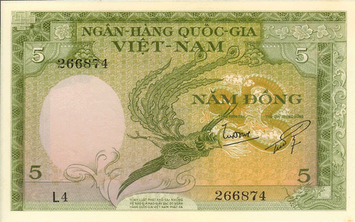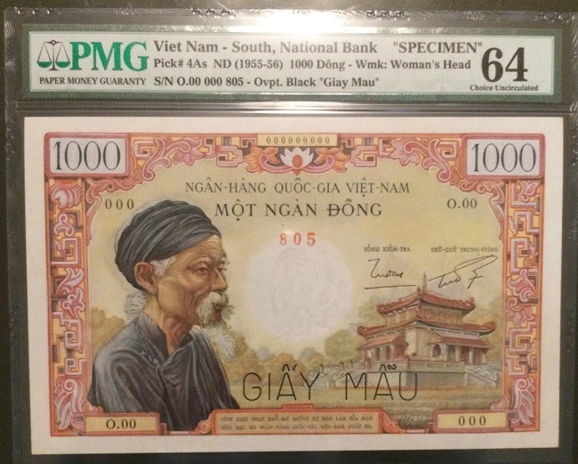 VIETNAM-SOUTH P-4A UNC ND, 1000 DONF, OLD MAN, SAMPAN AT LOWER LEFT, SPECIMEN, PLEASE CALL FOR PRICE IF INTERESTED 0 Front Side Back Side