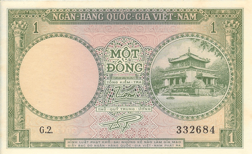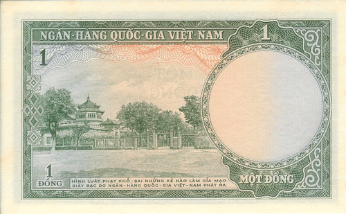 VIETNAM-SOUTH P-1a UNC, ND, 1955, 1 DONG, TEMPLE, GREEN.' 5 Front Side Back Side