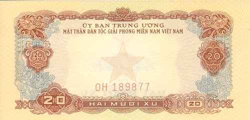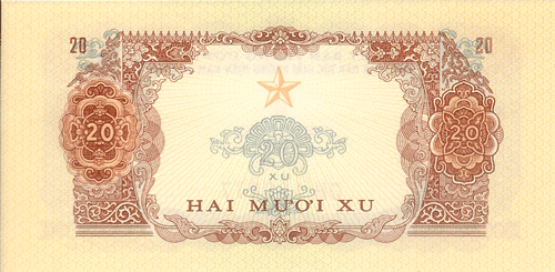 VIETNAM-SOUTH P-R2 UNC, ND, 1963, 20 XU, RED-BROWN, STAR AT CENTER, 3 Front Side Back Side