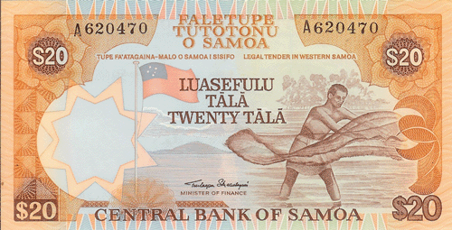 | WESTERN SAMOA | P-28 | UNC, | ND, 1985, 20 TALA, FISHNET, ORANGE,FLAG,' | 34 |