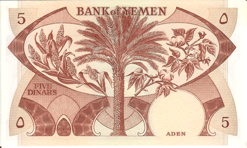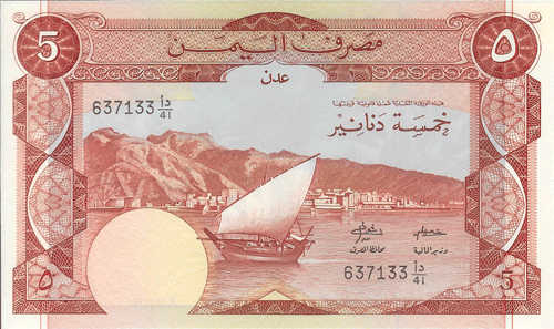 | YEMEN DEMOCRATIC REPUBLIC | P-8b | UNC, | ND, 1984, 5 DINARS, COASTAL TOWN, RED, | 65 |
