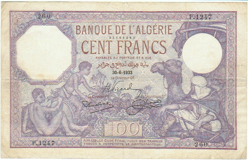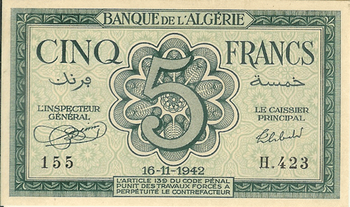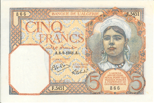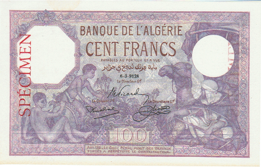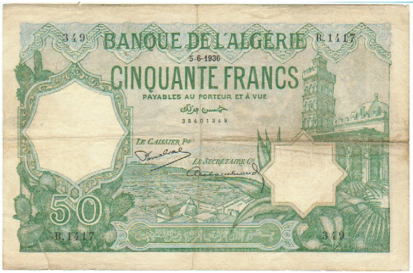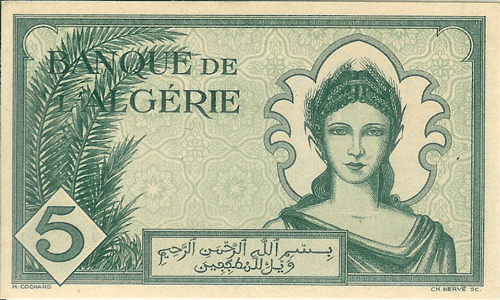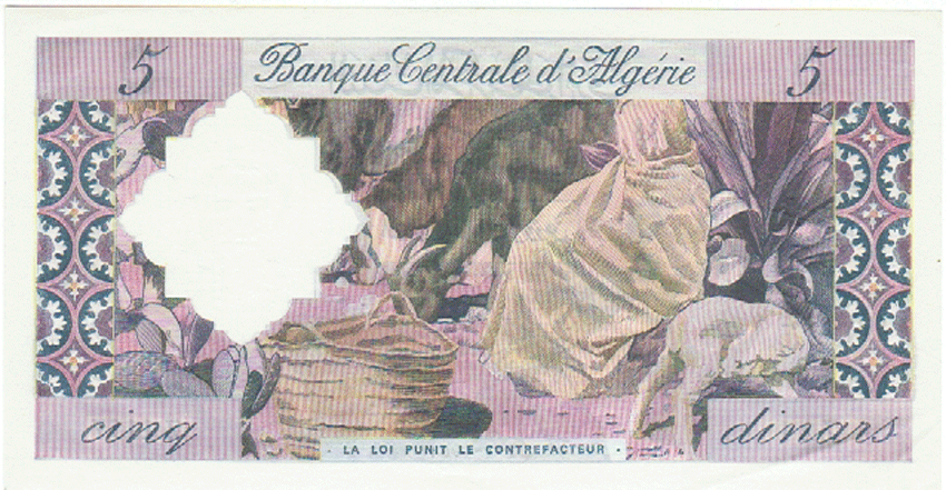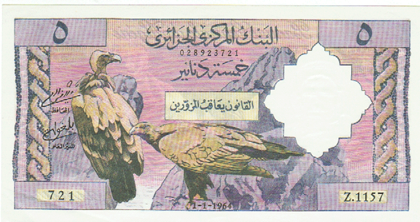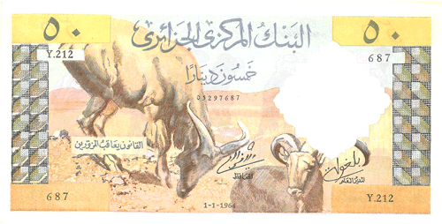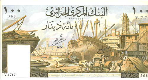 The Democratic and Popular Republic of Algeria, a North African country fronting on the Mediterranean Sea between Tunisia and Morocco, has an area of 919,565 sq. mi. (2,381,741 sq. km.) and a population of 28.6 million. Capital: Algiers (Alger). Most of the country?s working population is engaged in agriculture although a recent industrial diversification, financed by oil revenues, is making steady progress. Wines, fruits, iron and zinc ores, phosphates, tobacco products, liquefied natural gas, and petroleum are exported. ,Algiers, the capital and chief seaport of Algeria, was the site of Phoenician and Roman settlements before the present Moslem city was founded about 950. Normally part of the sultanate of Tlemcen, Algiers had a large measure of independence under the amirs of its own. In 1942 the Jews and Moors who had been expelled from Spain settled in Algiers and enjoyed an increasing influence until the imposition of Turkish control in 1518. For the following three centuries Algiers was the headquarters of the notorious Barbary pirates. The French took Algiers in 1830, and after a long and wearisome war completed the conquest of Algeria and annexed it to France, 1848. Following the armistice signed by France and Nazi Germany on June 22, 1940, Algeria fell under Dwight D. Eisenhower on Nov. 8, 1942. The inability to obtain equal rights with Frenchmen led to an organized revolt which began on Nov. 1, 1954 and lasted until a ceasefire was signed on July 1, 1962. Independence was proclaimed on July 5, 1962, following a self-determination referendum.,, Rulers:,,, ,French to 1962,, Monetary System:,,, ,1 Franc = 100 Centimes to 1960,, ,1 Nouveau Franc = 100 Old Francs, 1959-64,, ,1 Dinar = 100 Centimes, 1964-,,
