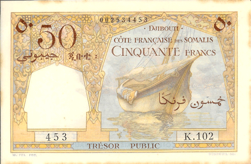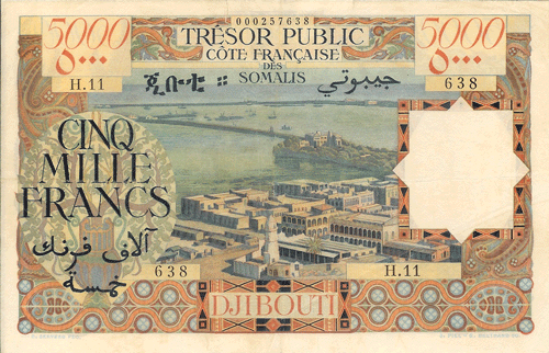 French Somaliland (later to become the French Oversees Territory of Afars and Issas, and then independent Djibouti) was located in northeast Africa at the Bab el-Mandeb Strait connecting the Suez Canal and the Red Sea with the Gulf of Aden and the Indian Ocean. It had an area of 8,494 sq. mi. (22,000 sq. km.). Capital: Djibouti. ,French interest in the area began in 1839 with concessions obtained by a French naval lieutenant from the provincial sultans. French Somaliland was made a protectorate in 1884 and its boundaries were delimited by the Franco-British and Ethiopian accords of 1887 and 1897. It became a colony in 1896 and a territory within the French Union in 1946. In 1958, it voted to join in March 1967. Its name was changed from French Somaliland to the French Territory of Afars and Issas on July 5, 1967. ,, ,On June 27, 1977 French Afars and Issas became Africa?s 49th independent state as the republic of Djibouti.,, Rulers:,,, ,French to 1977,, Monetary System:,,, ,1 Franc = 100 Centimes,,