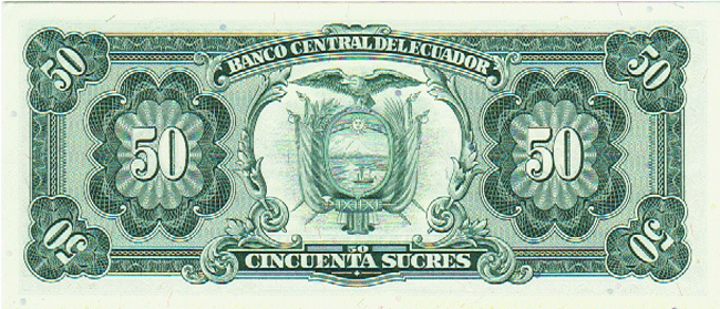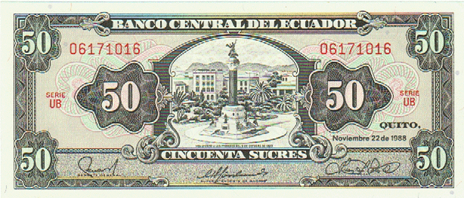 ECUADOR P-122 UNC, 22-11-1988, 50 SUCRES, NATIONAL MONUMENT, 4 Front Side Back Side