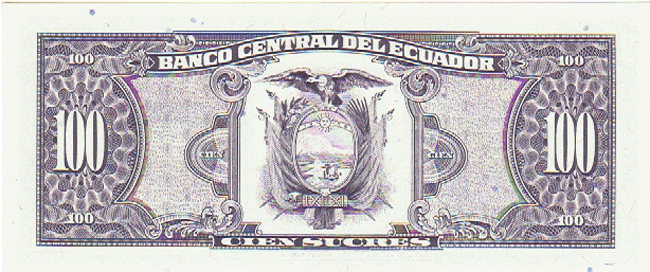 The Republic of Ecuador, located astride the equator on the Pacific coast of South America, has an area of 109,484 sq. mi. (283,561 sq. km.) and a population of 12.65 million. Capital: Quito. Agriculture is the mainstay of the economy but there are appreciable deposits of minerals and petroleum. It is the world?s largest exporter of bananas and balsa wood. Coffee, cacao and shrimp are also valuable exports. ,Ecuador was first sighted, 1526, by Bartolome Ruiz. Conquest was undertaken by Sebastian de Benalcazar who founded Quito in 1534. Ecuador was part of the province, later Vice-royalty, of Peru until 1739 when it became part of the Vice-royalty of New Granada. After two failed attempts to attain independence in 1810 and 1815, it successfully declared its independence in October 1820, and won final victory over Spanish forces May 24, 1822. Incorporated into the Gran Colombia confederacy, it loosened its ties in 1830 and regained full independence in 1835.,, Monetary System:,,, ,1 Sucre = 10 Decimos = 100 Centavos,, ,1 Condor = 25 Sucres,, ,1 USA Dollar = 25,000 Sucres (March 2001),,