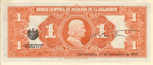 EL SALVADOR P-83 UNC 1-1-1947, 1 COLON, COWS AT CENTER 325 Front Side Back Side