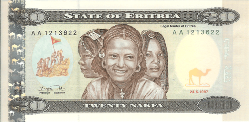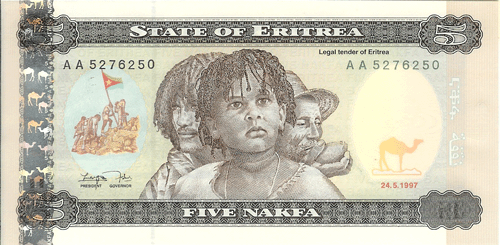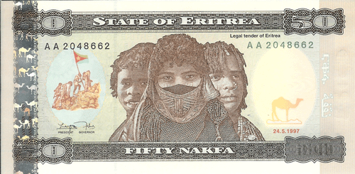 The State of Eritrea, a former Ethiopian province fronting on the Red Sea, has an area of 45,300 sq. mi. (117,600 sq. km.) and a population of 3.53 million. It was an Italian colony from 1889 until its incorporation into Italian East Africa in 1936. It was under the British Military Administration from 1941 to 1952, when the United Nations designated it an autonomous unit within the federation of Ethiopia and Eritrea. On November 14, 1962, it was annexed with Ethiopia. In 1991 the Eritrean Peoples Liberation Front extended its control over the entire territory of Eritrea. Following 2 years of provisional government, Eritrea held a referendum on independence in May 1993. Overwhelming popular approval led to the proclamation of an independent Republic of Eritrea on May 24. Monetary System:,,, ,1 Nakfa = 100 Cents,,