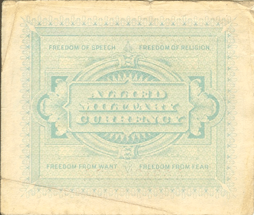 ITALY P-M12b AU, ND, SERIES 1943, 5 LIRE, GREEN-BROWN, WITHOUT 'F' 15 Front Side Back Side