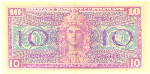 UNITED STATES P-M28 AU 481 SERIES: ND, 1951, $10., MAN SEATED AT LEFT,RARE, 2ND PRINTING, 1750 Front Side Back Side