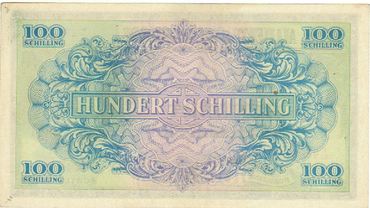 AUSTRIA P-110a XF-AU ND, 1944 SERIES, 100 SCHILLING, GREEN, 40 Front Side Back Side