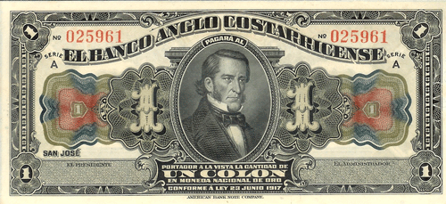The Republic if Costa Rica, located in southern Central America between Nicaragua and Panama, has an area of 19,575 sq. mi. (50,700 sq. km.) and a population of 3.8 million. Capital: San Jose. Agriculture predominates; coffee, bananas, beef and sugar contribute heavily to the county?s export earnings. ,Costa Rica was discovered by Christopher Columbus in 1502, during his last voyage to the new world, and was a colony of Spain from 1522 until independence in 1821. Columbus named the territory Nueva Cartago; the name Costa Rica wasn?t generally employed until 1540. Bartholomew Columbus attempted to found the first settlement but was driven off by Indian attacks and the country wasn?t pacified until 1530. Costa Rica was absorbed for two years (1821-1948) into the Mexican Empire of Agustin de Iturbide. From 1823 to 1848 it was constituent state of the Central American Republic (q.v.). It was established as a republic in 1848.,, ,Constitution revisions followed in 1871 and 1948. In the early 1990?s, Costa Rica was beset with economic problems.,, Monetary System:,,, ,1 Peso = 100 Cervatos to 1896,, ,1 Colon = 100 Cemtimos,,