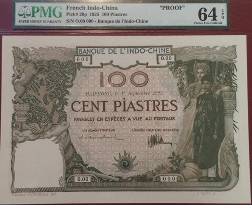 1925 199 PIASTRES, VERY RARE PROOF, PLEASE CALL FOR PRICE.. |