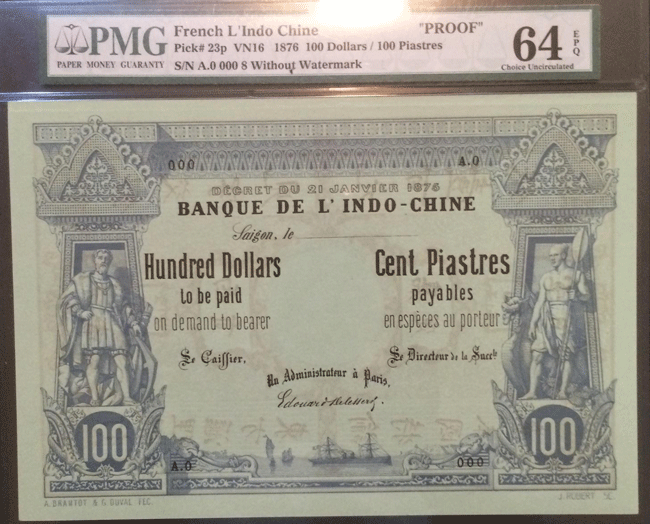 ND, 1876, 100 PIASTRES, PROOF, VERY RARE, PLEASE CALL FOR PRICE.. |