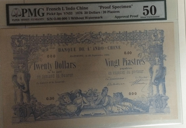 1878, $20/20 PIASTRES, PROOF SPECIMEN, EXTREMELY RARE, IF INTERESTED PLEASE CALL FOR THE PRICE |
