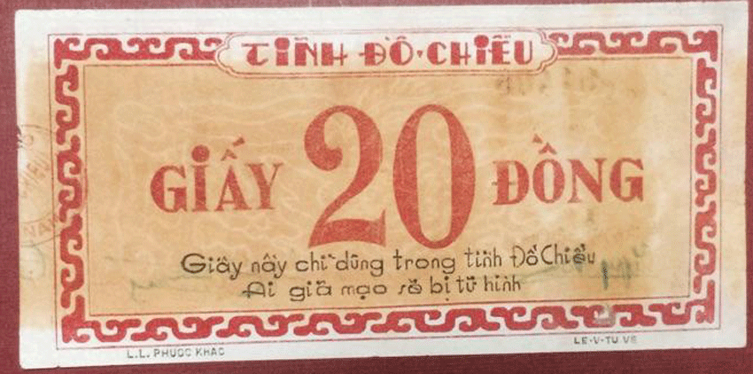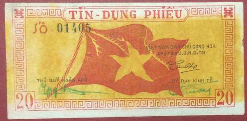 ND, 1940-47, 20 DONG, FIRST NOTE OF NORTH VIETNAM, EXTREMELY RARE, IF INTERESTED, PLEASE CALL FOR THE PRICE.. |
