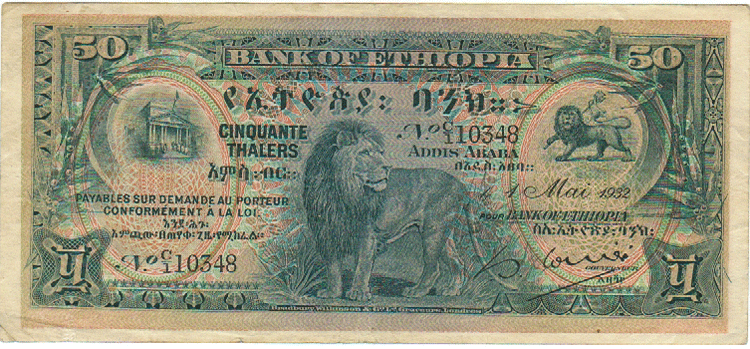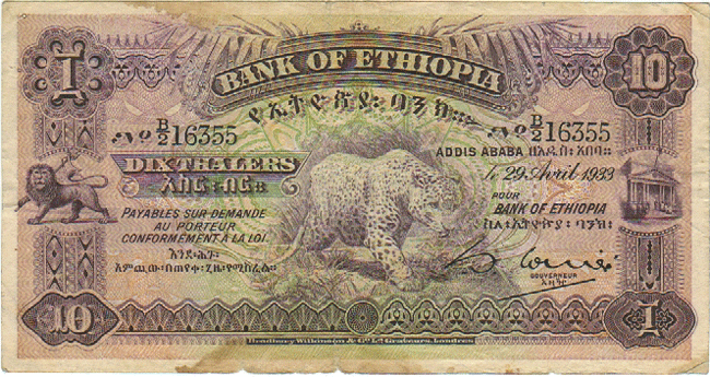 29-4-1933, 10 THALERS, TIGER, BANK OF ETHIOPIA, RARE NOTE |