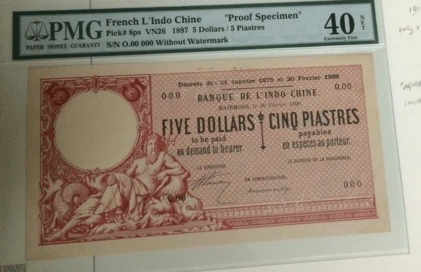 1897, $5./5 PIASTRES, PROOF SPECIMEN, EXTREMELY RARE, IF INTERESTED, PLEASE CALL FOR THE PRICE.. |