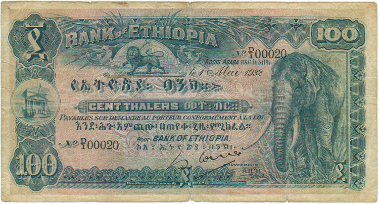 1-5-1932, 100 THALERS, ELEPHANT, RARE NOTE,