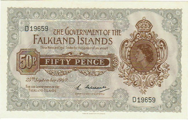 25-9-1969, 50 PENCE, QEII, BROWN-BLUE,
