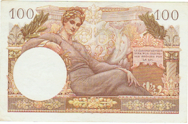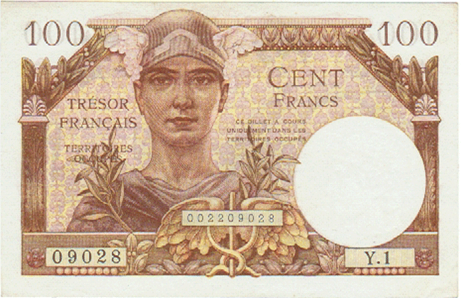 ND, 1947, 100 FRANCS, MERCURY ON FACE, SCARCE