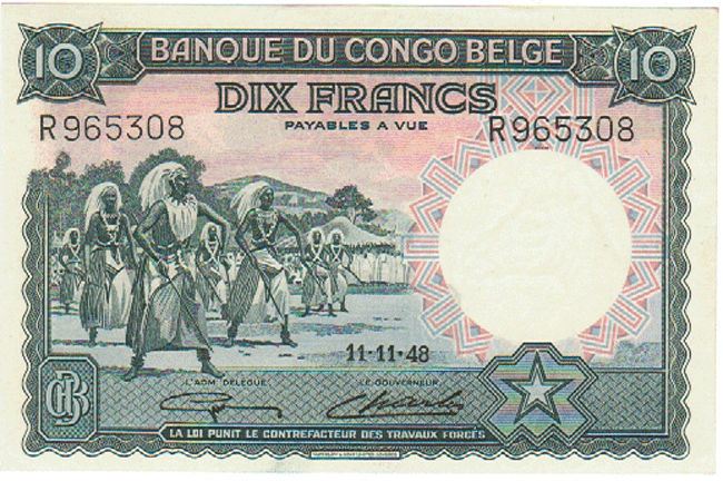 11-11-1948, 10 FRANCS, DANCING WATUSI, SOLDIERS ON REVERSE, RARE GRADE