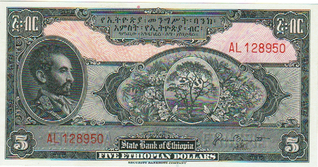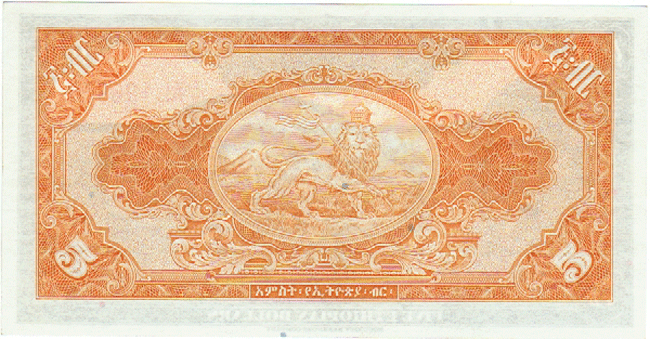 ND, 1946, $5, HAILE DELASSIE, BLACK ON ORANGE,