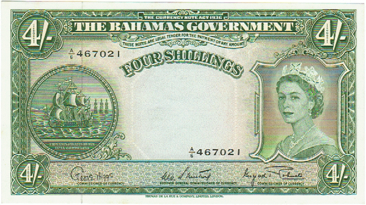 ND, 1953, 4 SHILLINGS, QEII,SHIP SEAL, PRINTER TDLR |