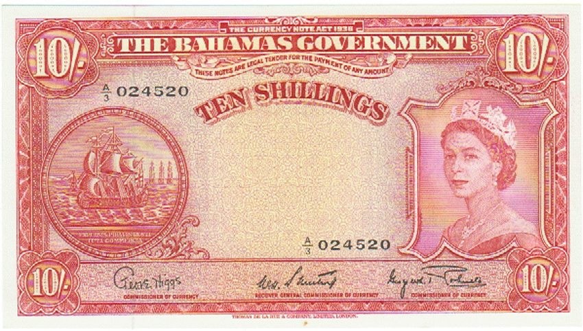 ND, 1953, 10 SHILLINGS, QEII, SHIP SEAL, RED, PRINTER TDLR |